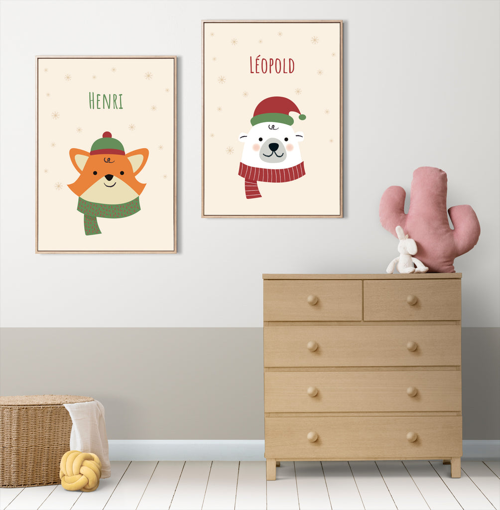 💛 Ajoutez une touche de fraîcheur à la chambre de votre enfant avec une affiche spéciale animaux de Noël et personnalisée !